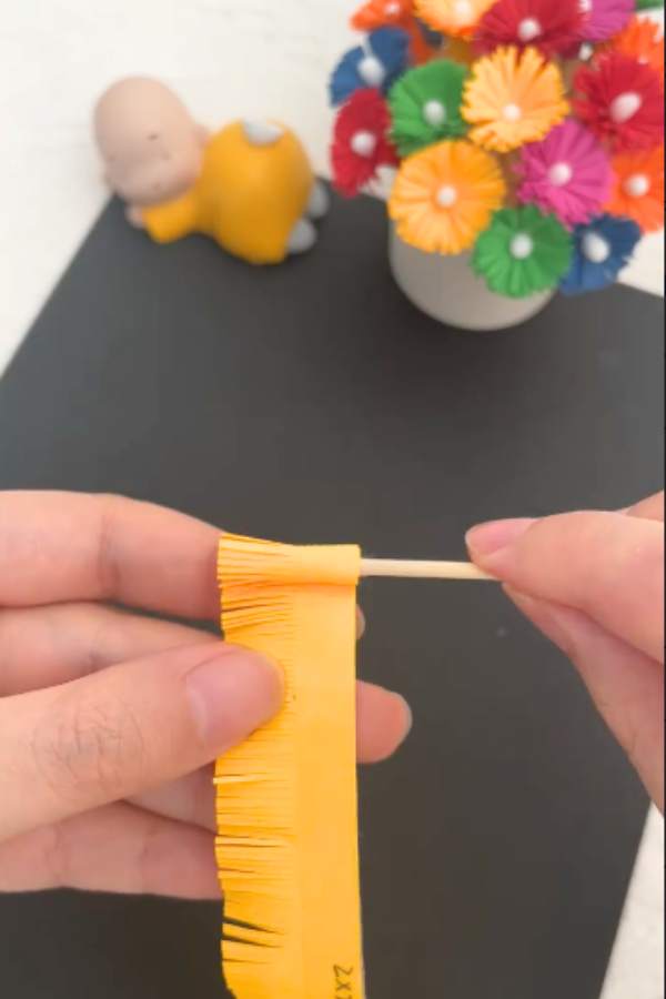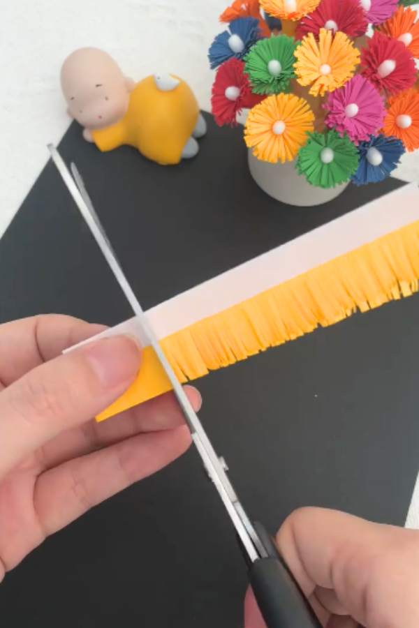 Use scissors to carefully cut small slits along the top edge of the paper, creating a fringe. These will become the flower petals.