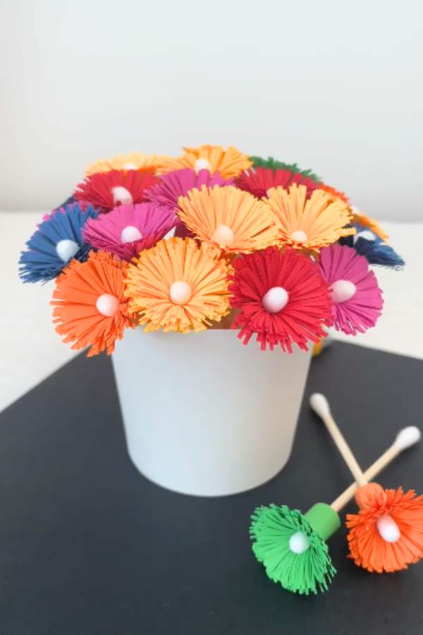 This DIY Q-Tip Flower Vase is a colorful and creative way to brighten up any space!