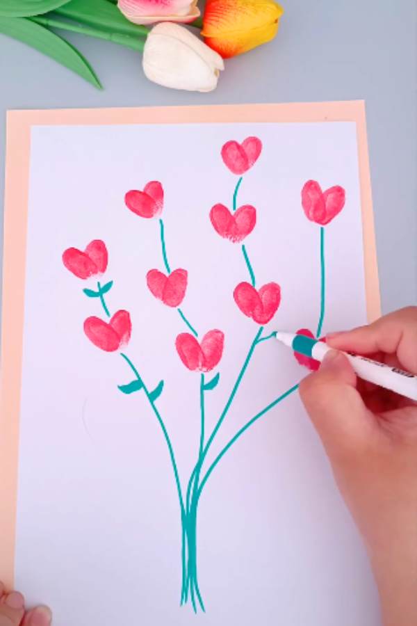 With just a dab of paint and a few creative strokes, you can transform your fingerprints into a blooming bouquet of flowers.