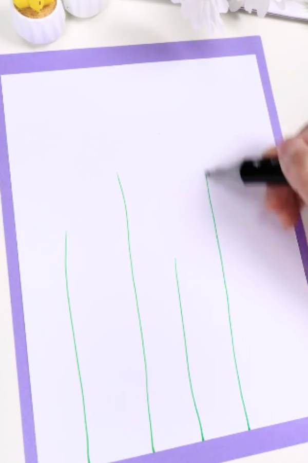 • Start by drawing stems with a pencil on your piece of paper. These will be the bases of your flowers. Look at the image for guidance!
