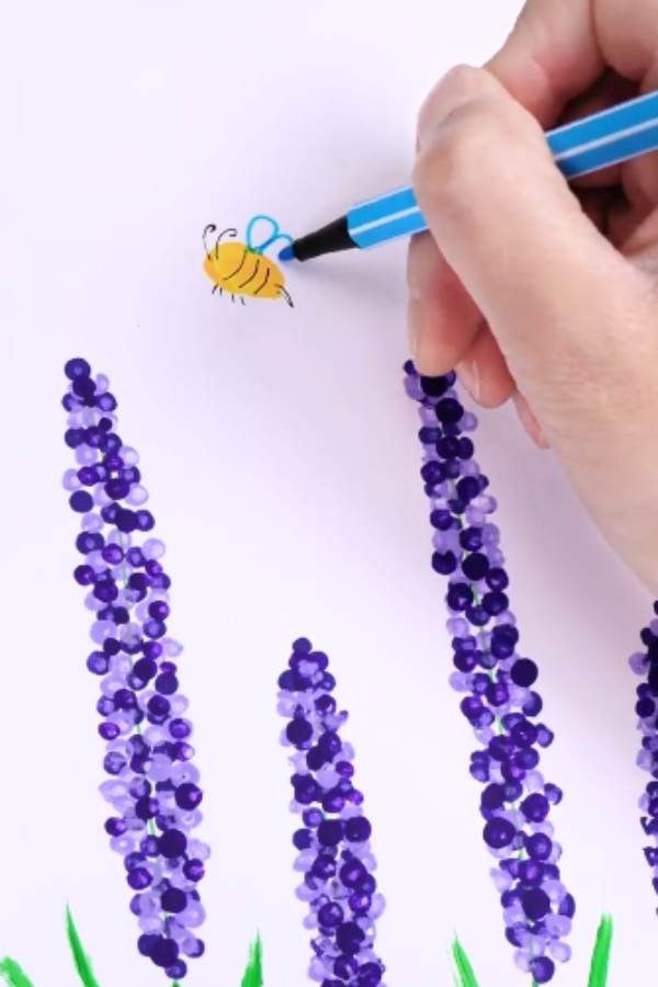 • Once everything is dry, your purple flower garden with buzzing bumblebees is complete!